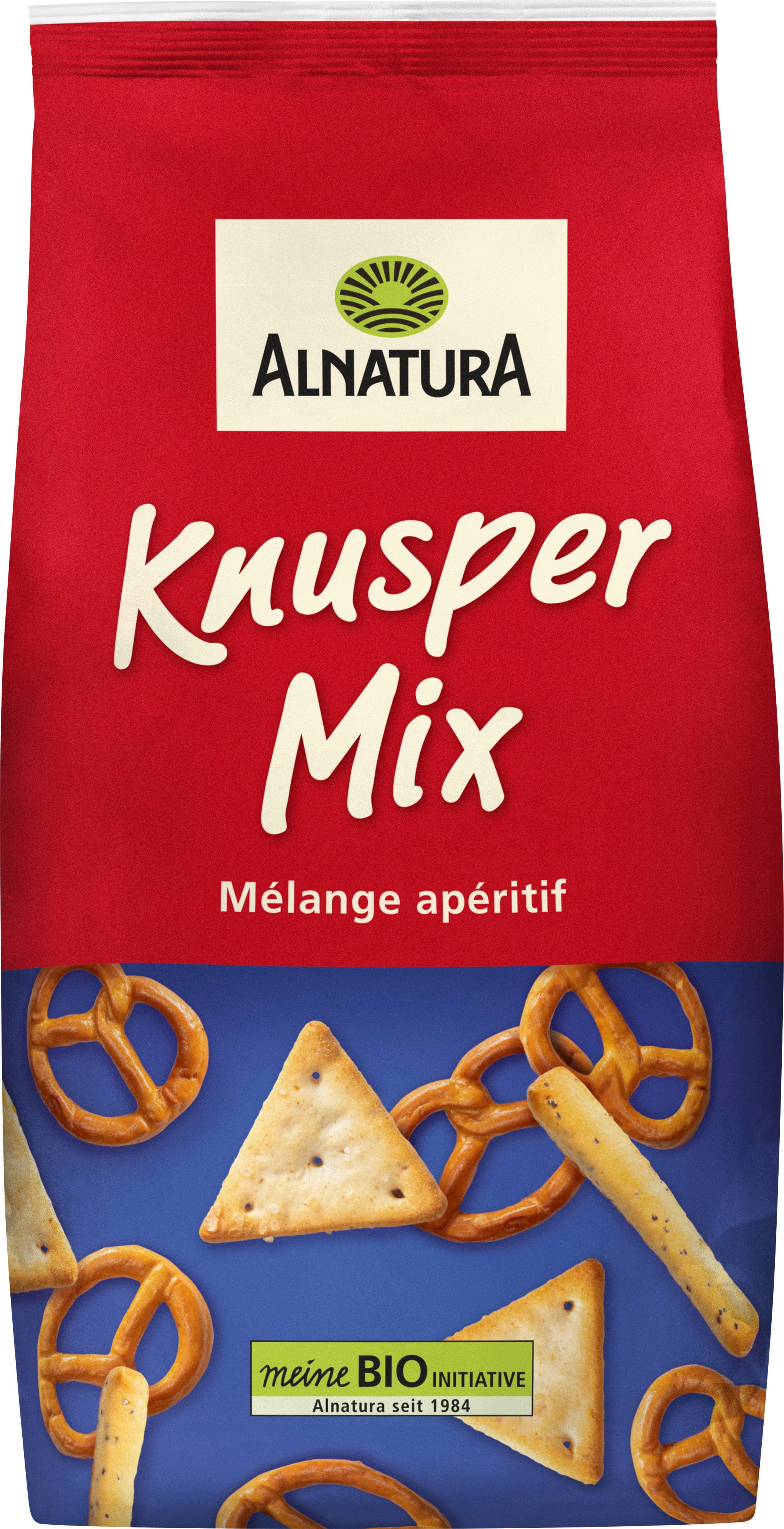 The Alnatura Organic Crunchy Snack Mix offers a variety of flavours for many occasions. Alongside salted pretzels and small poppy seed sticks, triangular sesame biscuits add an aromatic touch to any snack selection.