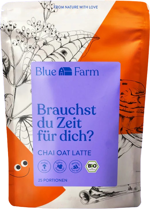 Treat yourself to an aromatic break with the Chai Oat Latte by Blue Farm - a harmonious blend of aromatic super spices and creamy oats. This caffeine-free latte powder combines cinnamon, ginger and cardamom with the well-known reishi mushroom to create an unrivalled taste. Perfect for relaxing moments or as an alternative to coffee!
