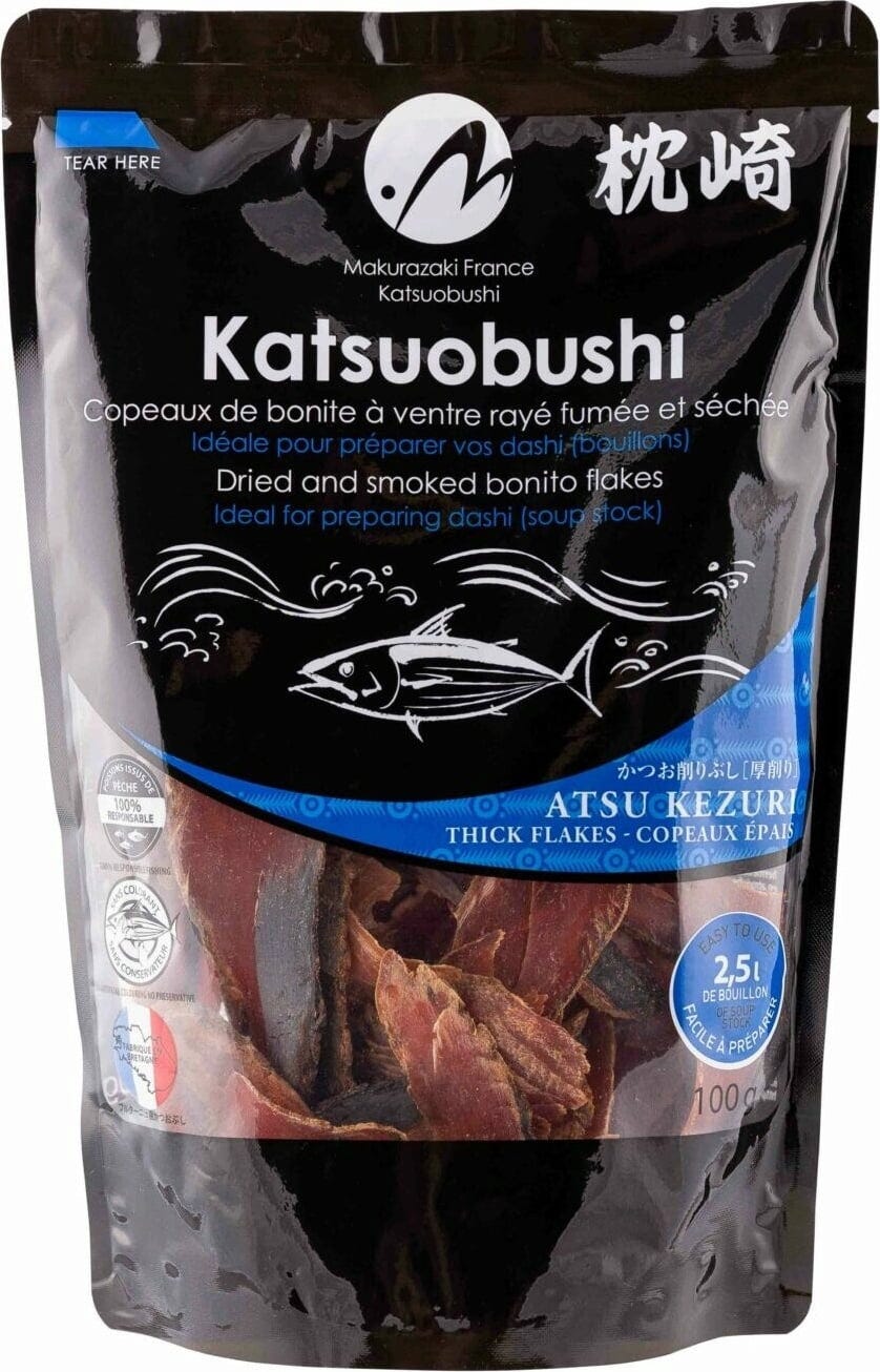 These thick Katsuobushi flakes are made in France using traditional Japanese methods. Rich in umami, they are perfect for preparing classic stocks or adding a depth of flavour to savoury dishes.