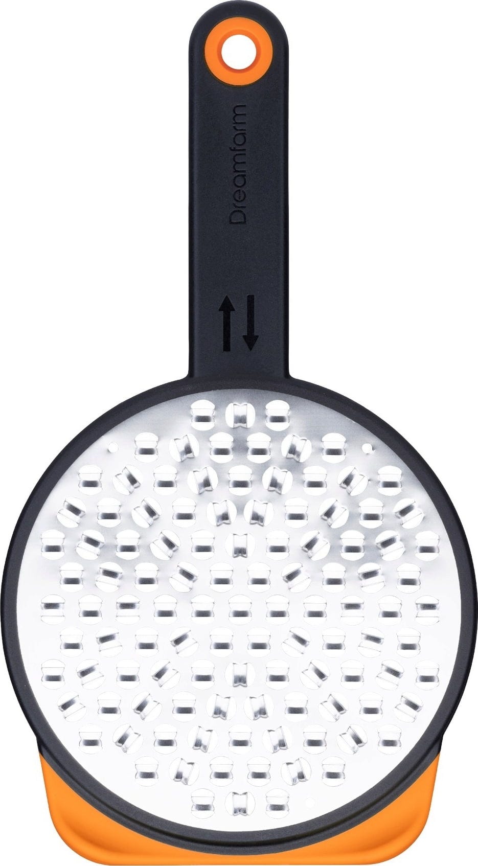 With the Ograte Grater by Dreamfarm, you can transform large quantities of cabbage, onions, or cheese into perfect shreds in record time. The secret lies in the generous, circular grating surface, which allows for significantly more efficient work thanks to its double-sided blades.