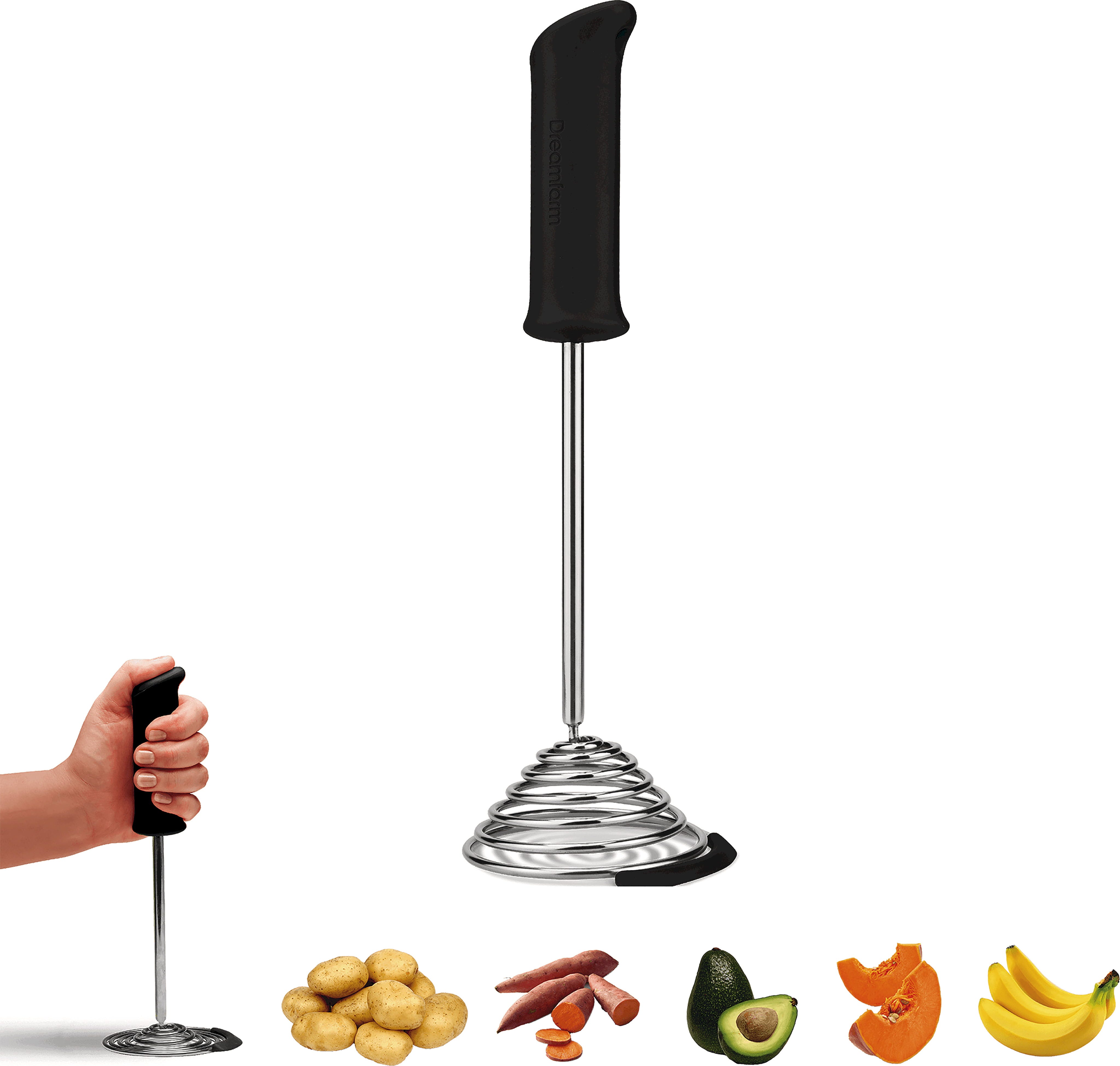 Stop struggling with traditional potato mashers! Dreamfarm's Smood lets you whip up the smoothest, fluffiest mash imaginable in record time. Its secret weapon is the ingenious spring-loaded head: the coils compress to efficiently crush food with minimal effort, while the ergonomic multi-grip handle gives you total control over every move.