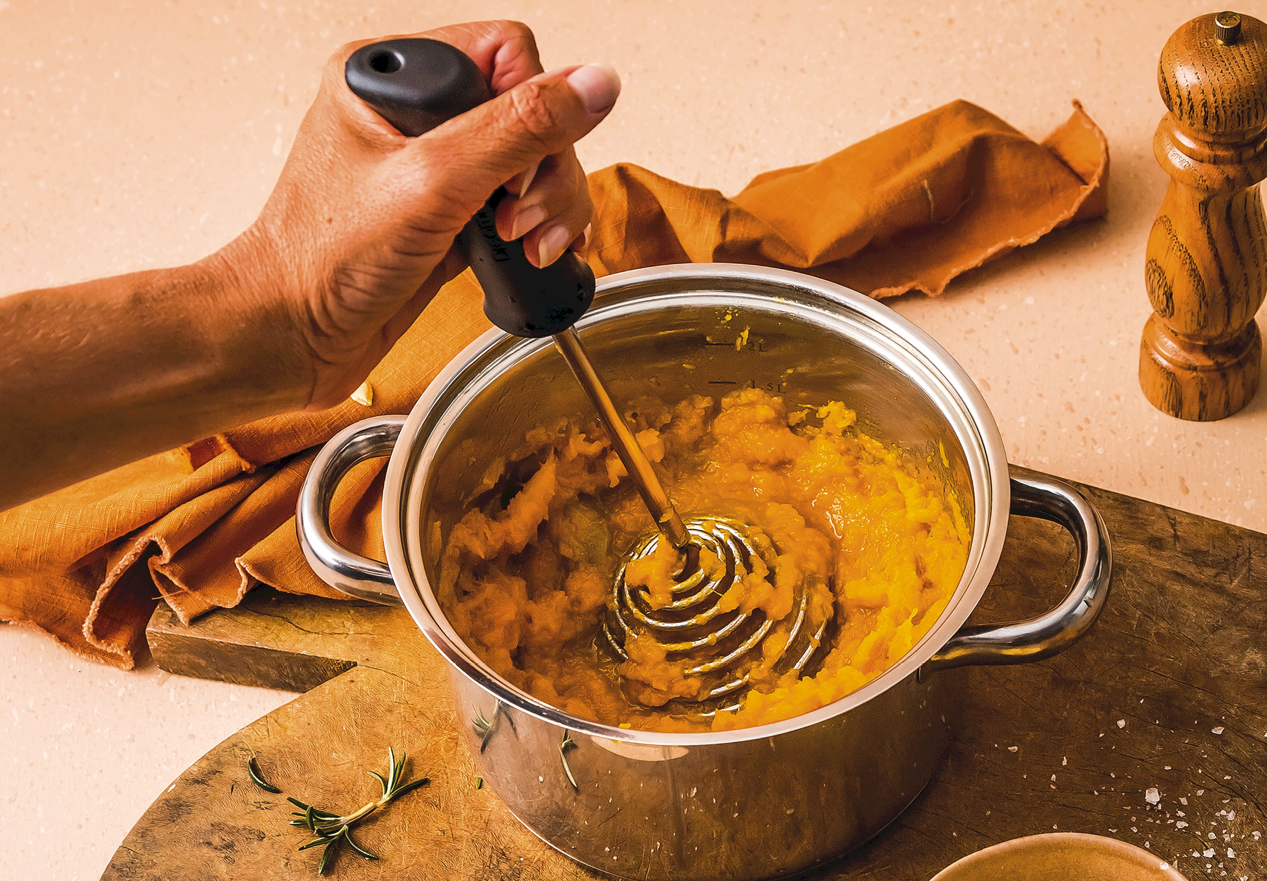 This versatile powerhouse isn't just for potatoes - it's your go-to for creamy guacamole, smooth baby food, or silky pumpkin and sweet potato purées. Built to last from high-quality stainless steel and heat-resistant silicone (up to 260°C), it’s as durable and rosbust as it is gentle on your non-stick cookware.