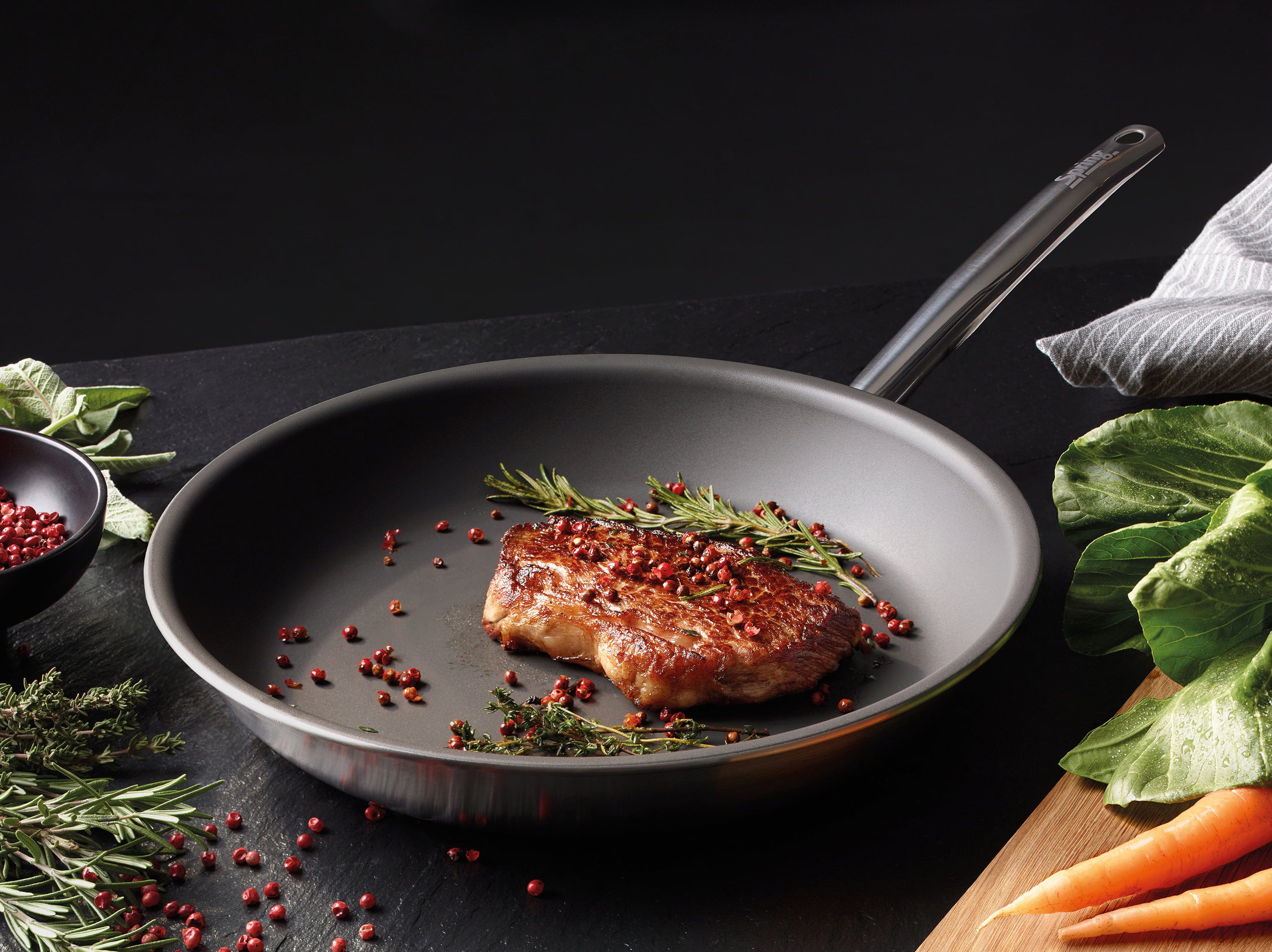 Experience a new dimension in frying with the Brigade Ultimate ny Spring. This pan combines the speed of the proven 5 multi-layer material with a revolutionary, extremely robust surface. What makes it special? Just a minimal amount of cooking oil is enough to activate the natural non-stick effect. Whether it's wafer-thin crêpes, the perfect breakfast egg or a crispy steak, everything glides out of the pan effortlessly.