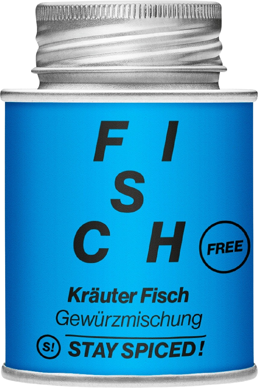 Even though FREE Herbs for Fish by Stay Spiced! does not contain any salt, onions or garlic, this spice mix is packed with flavours. Classic fish spices such as dill, lemon peel and tarragon meet exotic ingredients such as turmeric, lime leaves and ginger. A real explosion of taste for fried or grilled fresh and salt water fish.