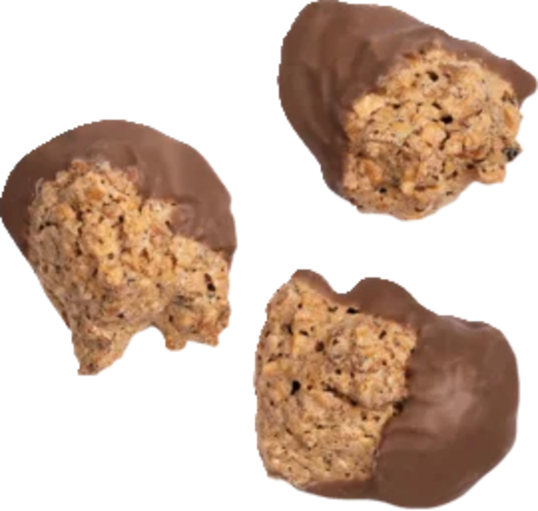 Crunchy hazelnut drop cookies dipped in fine milk chocolate