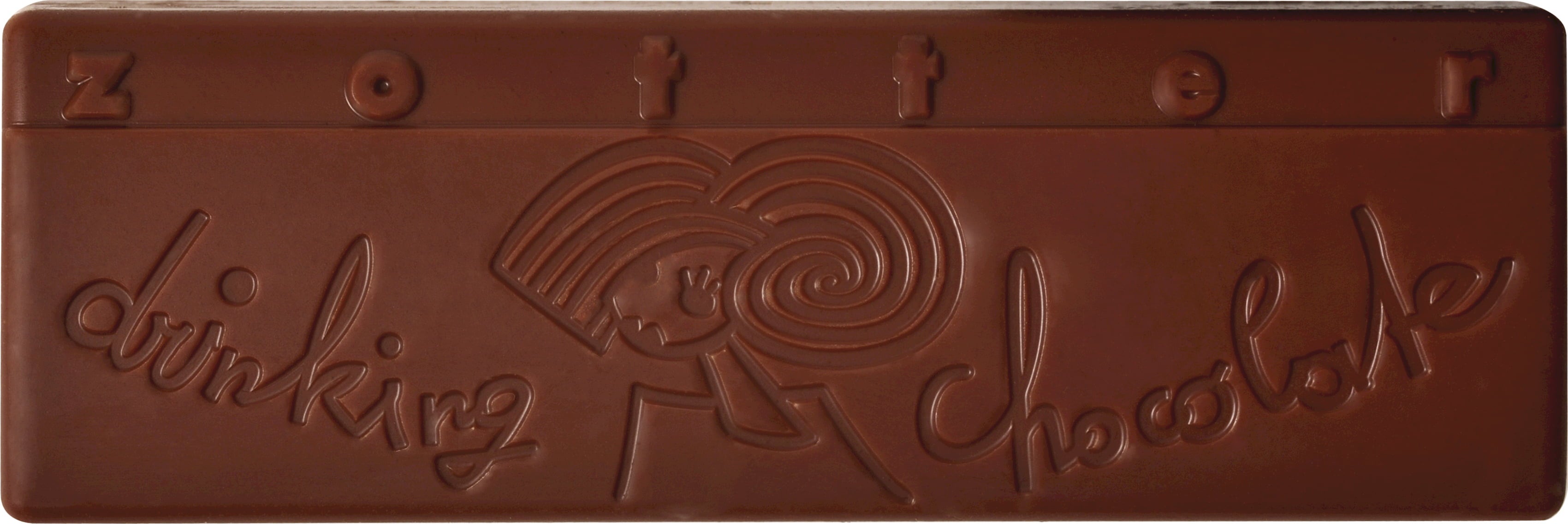 - Fill the Zotter Special Shaker (beware! – a normal shaker does not work!) with 0.2 l hot milk, drop the drinking chocolate bar into it, shake to your heart’s content and enjoy!