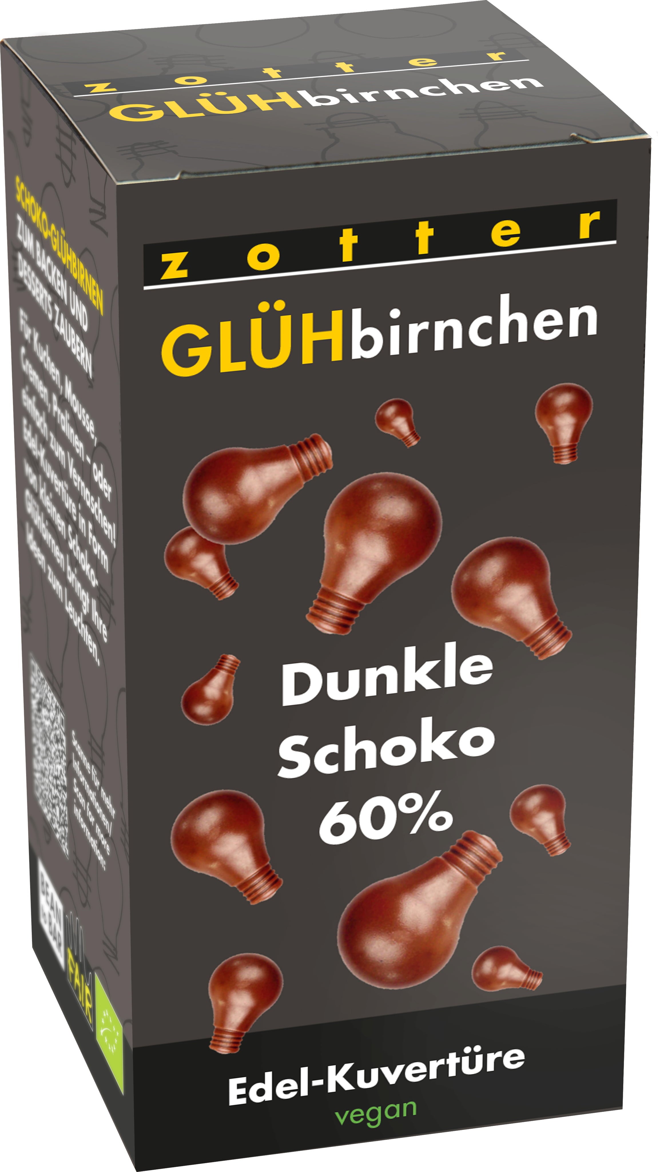 Zotter's dark chocolate Light Bulbs are perfect as a baking ingredient, for making pralines and tempering. They are delicious as a snack!