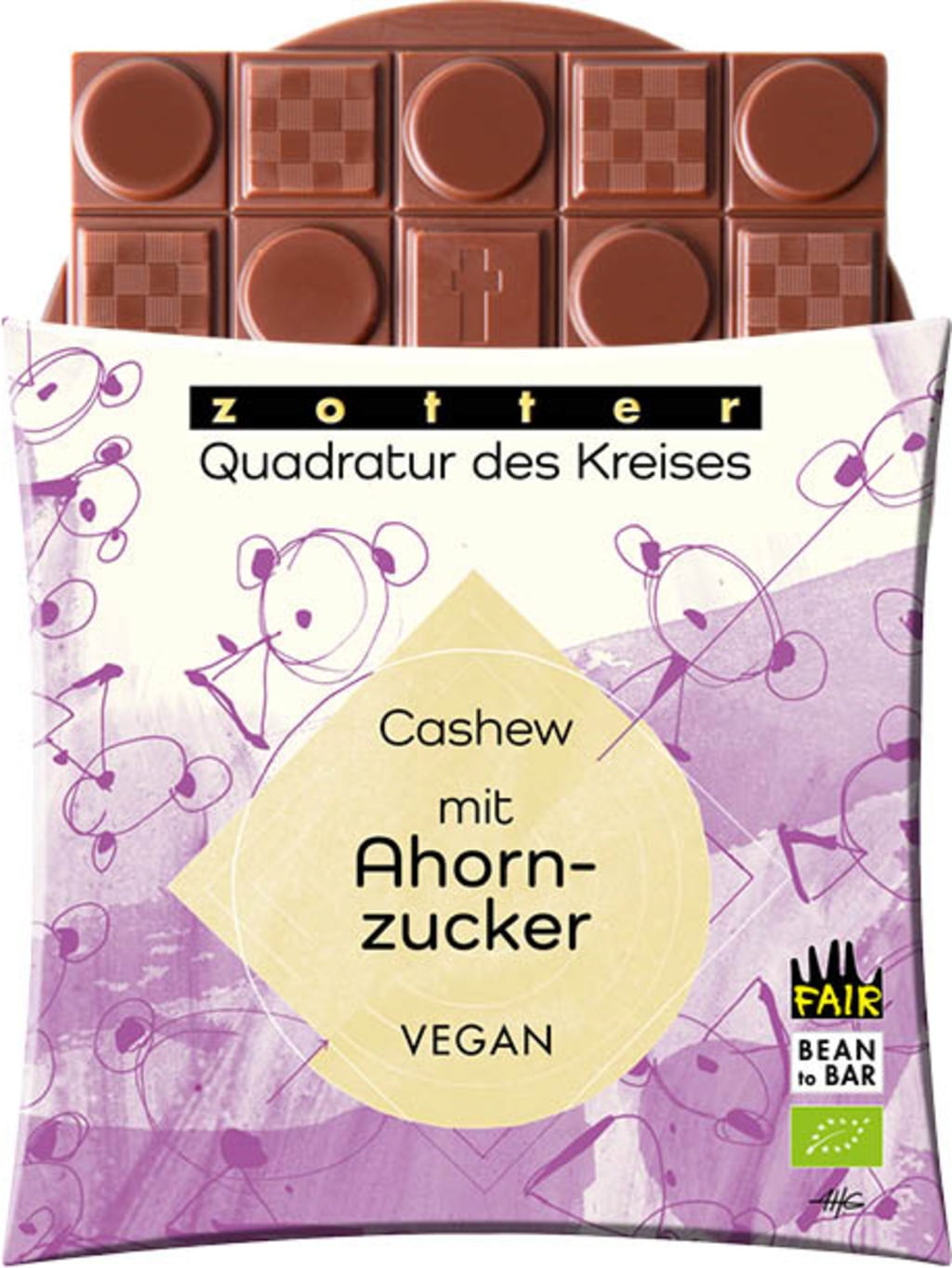 English reviews written for Zotter Chocolate Squaring the Circle - Cashew with Maple Sugar